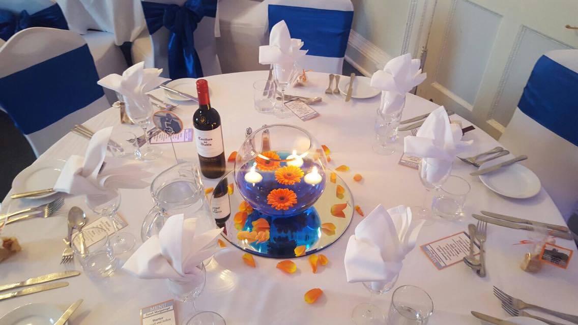On the 7th of this month, Alison and Stephen became Mr and Mrs Graham. Simple yet stunning, the decorated Old Library was a picture. The blues and the oranges complimented each other perfectly, giving a real spring feel to the room, despite the usual arctic temperatures of early January!